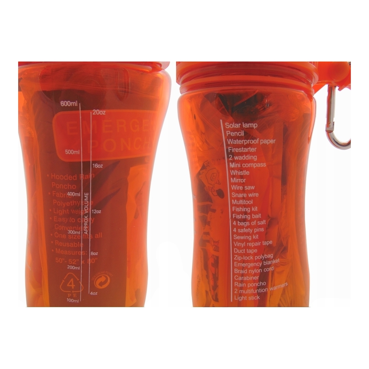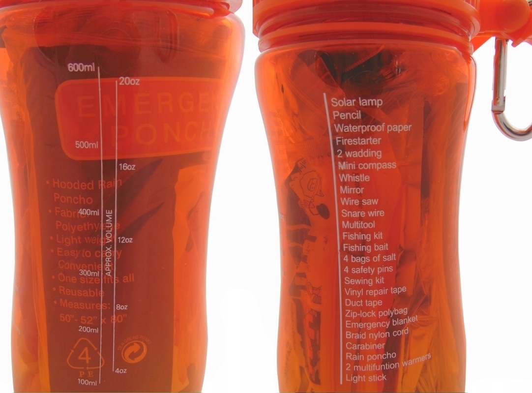 Kubek w jaskrawym kolorze (pomarańcz), aby łatwiej było go odnaleźć po zmroku czy w sytuacji kryzysowej. Zakręcany wodoszczelną pokrywką.