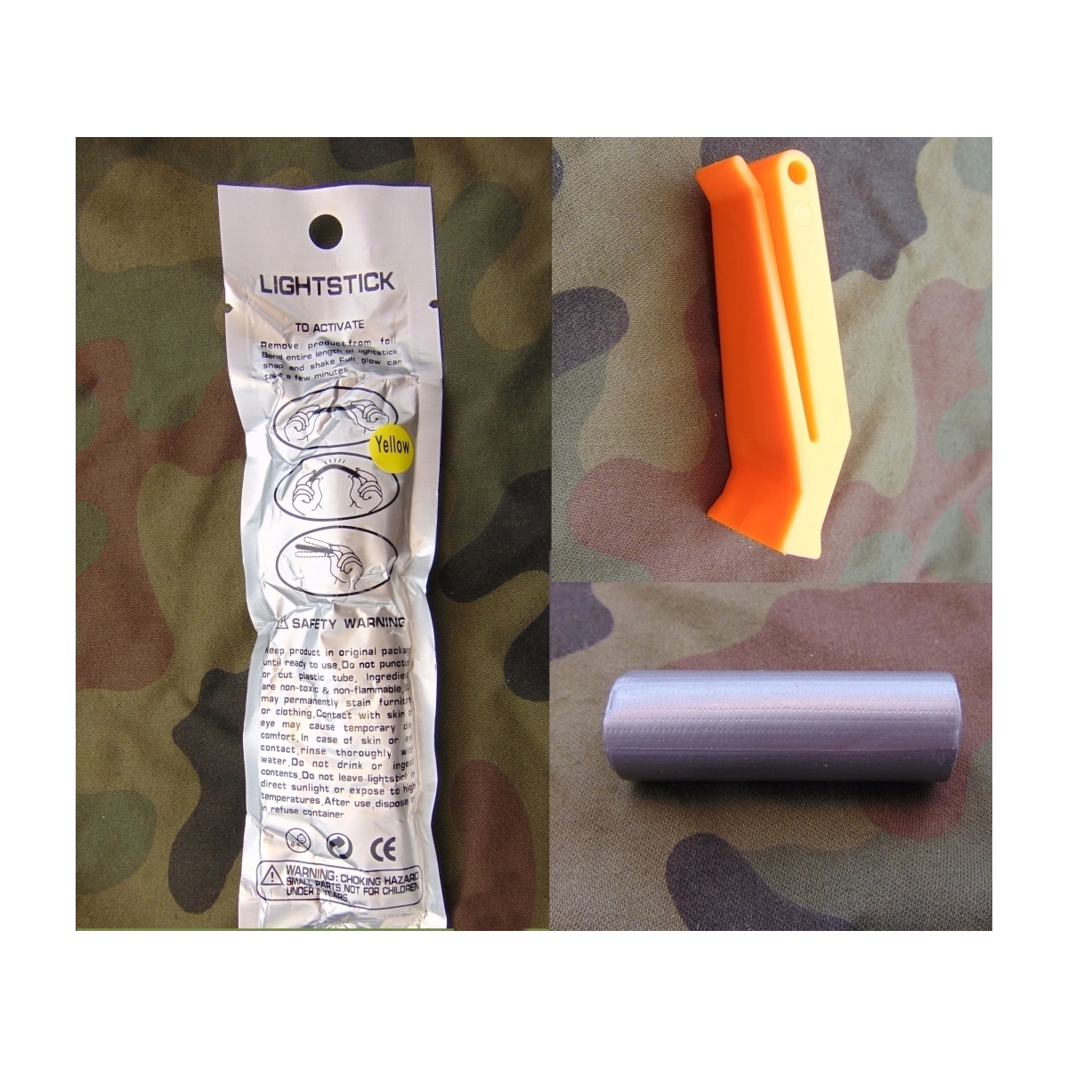- światło chemiczne barwy żółtej - doskonałe i szybkie w użyciu źródło światła. Pomoże zasygnalizować naszą pozycję, oświetli nam drogę, do zawieszenia w namiocie