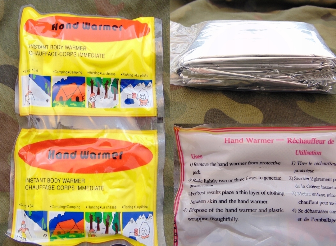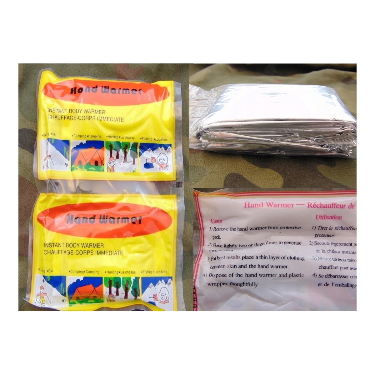 - koc termiczny - folia NRC - koc odblaskowy ułatwi wypatrzenie nas z góry, posłuży za śpiwór, nie dopuści do utraty przez nas ciepła z organizmu, posłuży także jako budulec do zadaszenia szałasu itd.