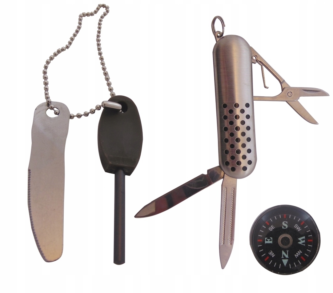 - krzesiwo połączone łańcuszkiem z nożykiem do krzesania iskier