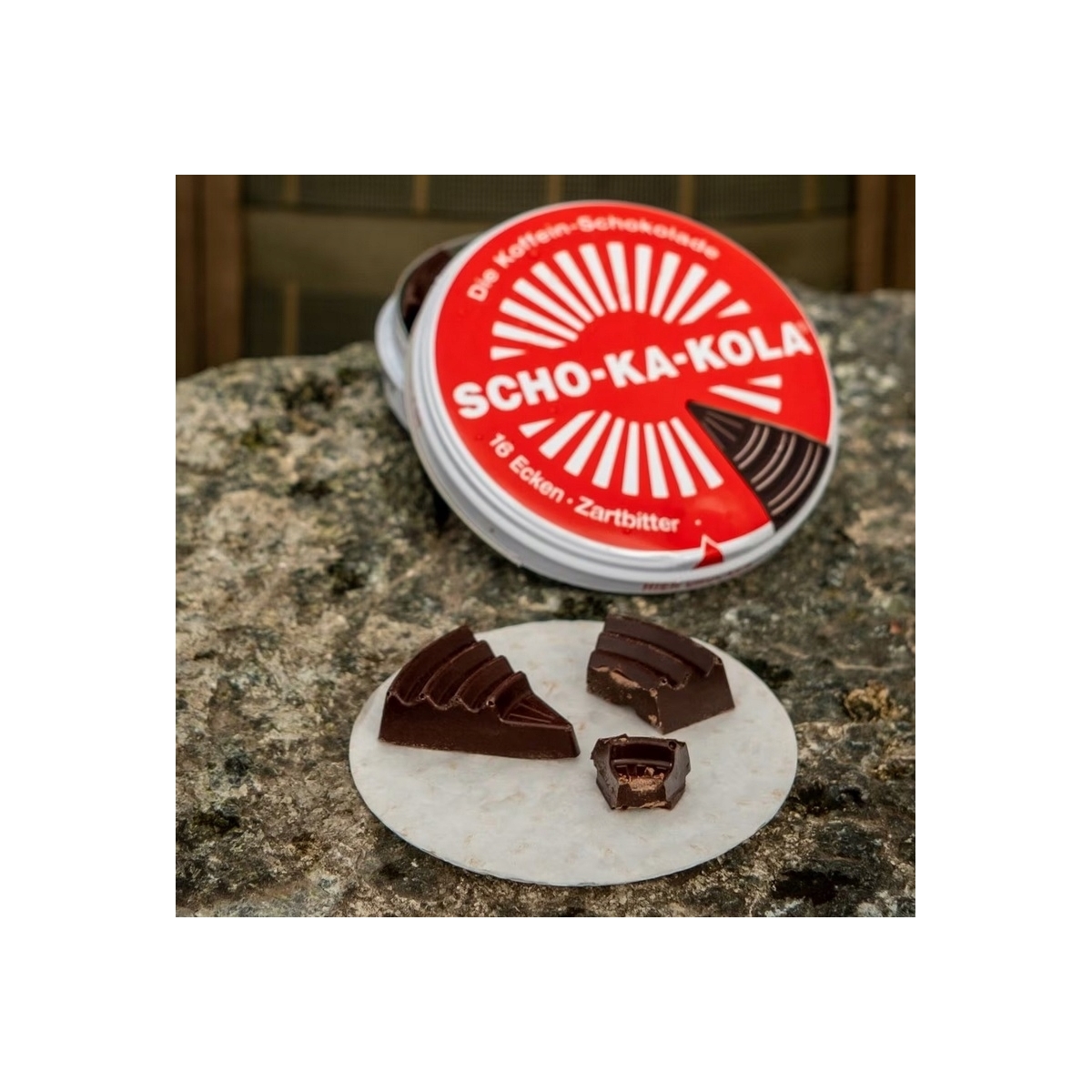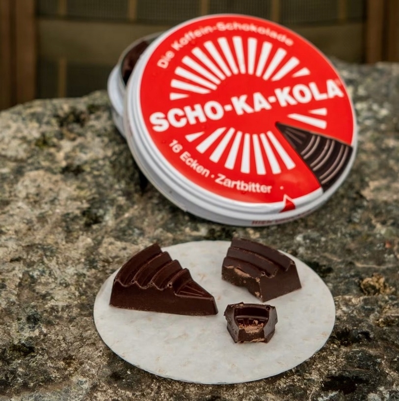 Czekolada Scho-Ka-Kola gorzka z kofeiną puszka - powrót ikonicznej części racji żywnościowych niemieckiego wojska i lotnictwa, opracowanej w 1935 by napędzać ciała i odświeżać umysły sportowców - dziś w formie praktycznej przekąski dla strudzonego wędrowca. Historycznie odwzorowana puszka ochroni czekoladę w każdych warunkach, a po opróżnieniu sprawdzi się jako część wyposażenia i ciekawostka w plecaku lub na półce.
