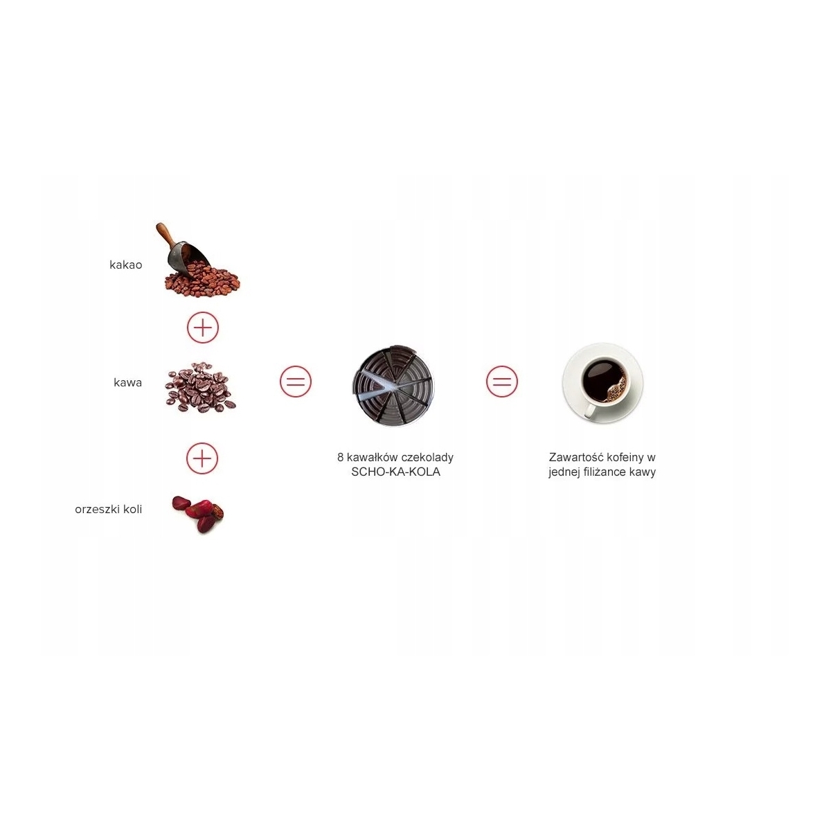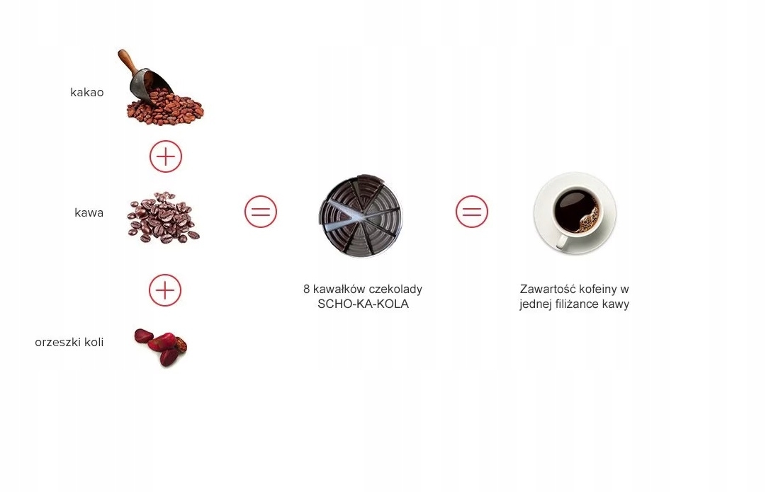 - Główne składniki: kakao (58%), kawa (2,6%), orzeszki kola (1,6%)