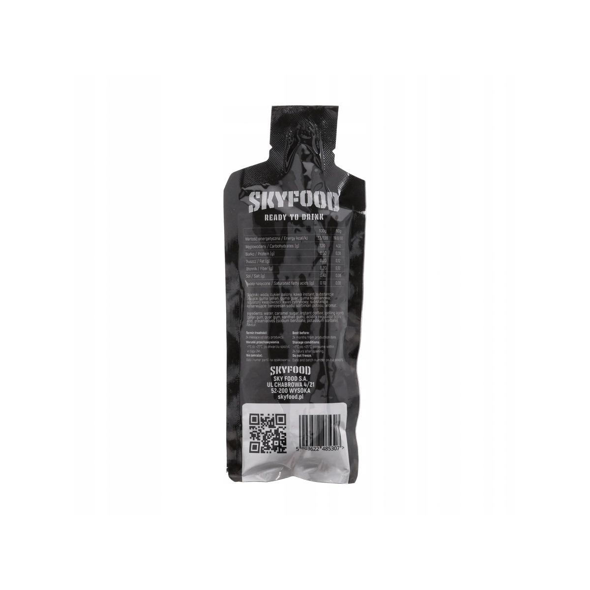 Skyfood Sky Coffee to alternatywa dla podwójnego espresso w formie żelu. Mały i poręczny, zmieści się idealnie w torbie czy plecaku, dzięki czemu jest pod ręką, kiedy go potrzebujemy.